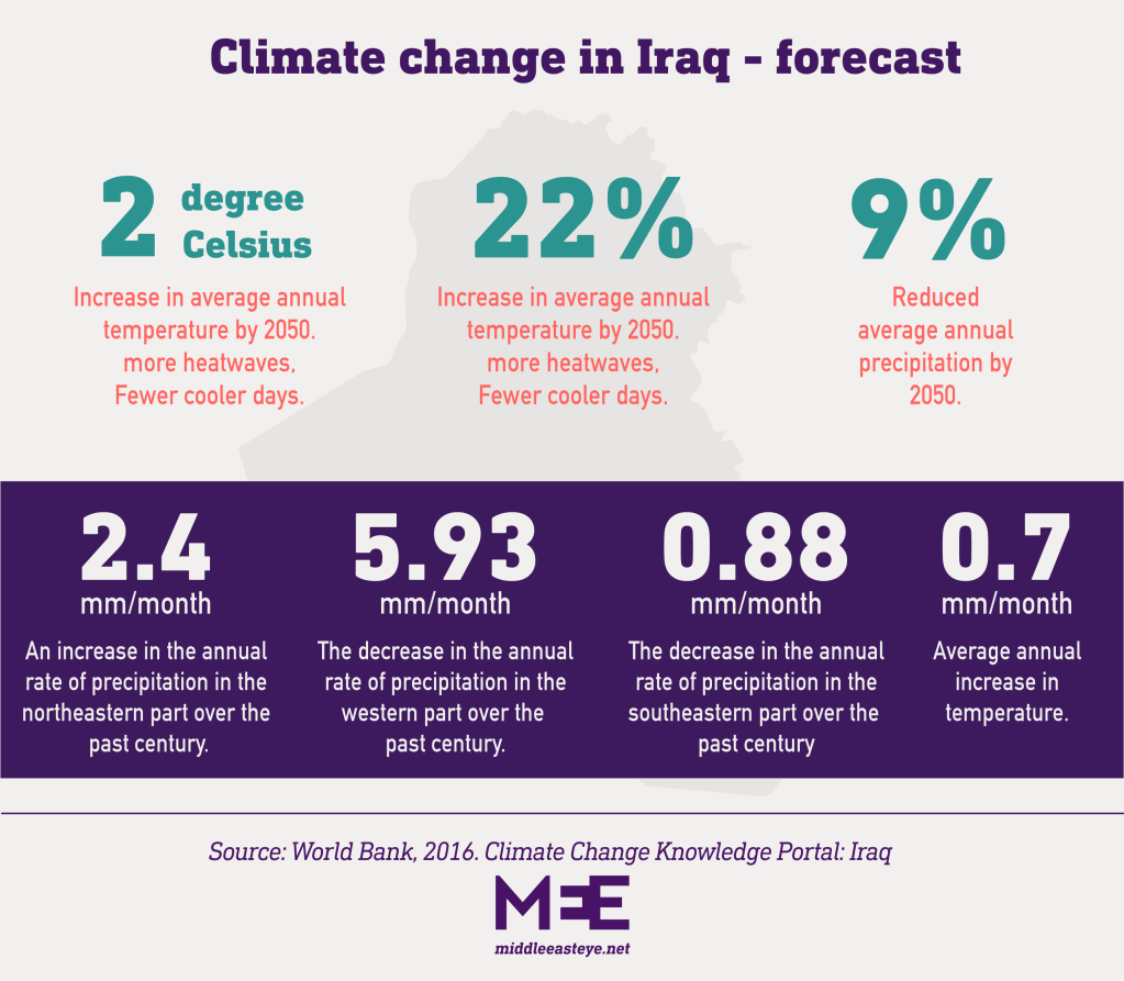 Iraq’s environment ministry has acknowledged the ongoing climate crisis, which threatens to make Iraq unliveable over the next two decades due to excessive heat, drought, scarcity of water reserves, desertification and loss of biodiversity – all of which are wreaking havoc on food security chains.